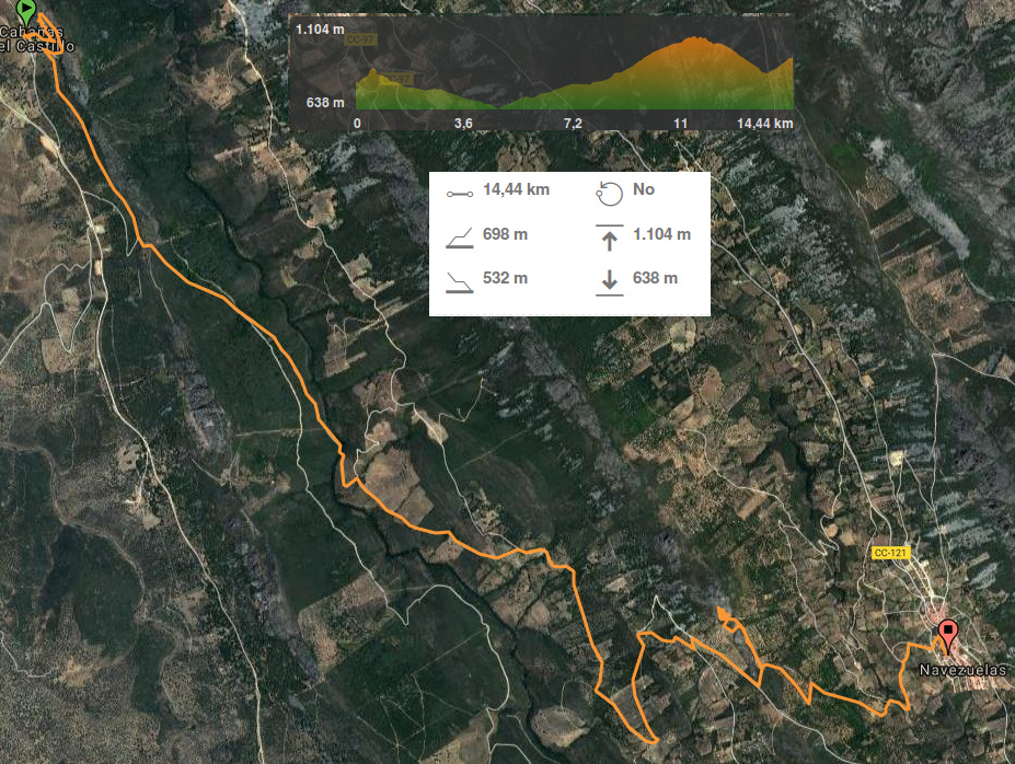 ¡¡ACLARACIONES!!: Dado que salimos muy temprano, el autobús parará en Cañamero para que el que lo desee, pueda desayunar, y a continuación continuamos viaje hasta Cabañas del Castillo, punto inicial de la ruta. Después el autobús se dirigirá hasta Navezuelas, donde nos recogerá para que, una vez finalizada la ruta, nos acerque a Guadalupe. Dependiendo de la llegada a esta localidad, comunicaremos la hora de salida hacia nuestras residencias.