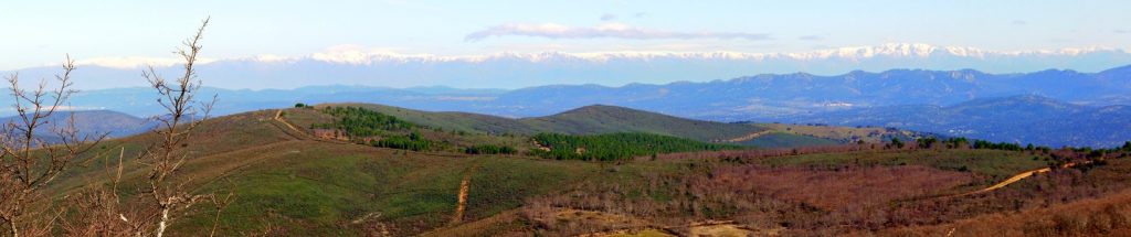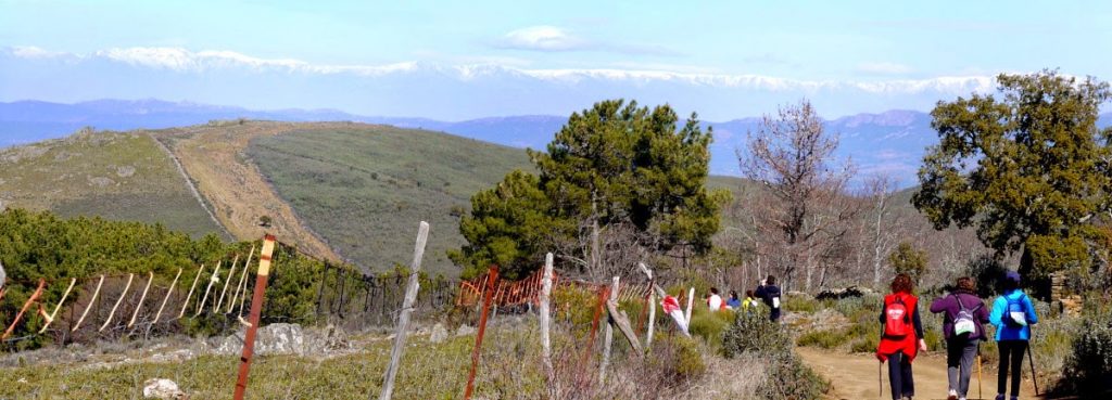 En la bajada, siempre frente a nosotros, al fondo, podremos tener la posibilidad de contemplar las cimas nevadas de la Sierra de Gredos, como se puede ver en estas fotos..