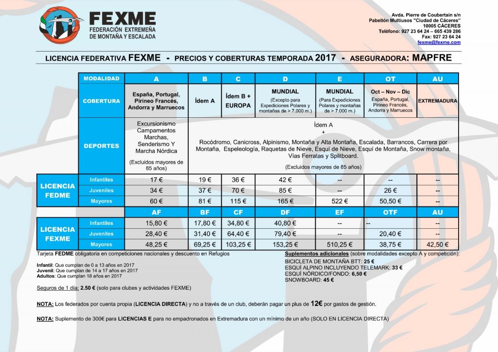 De acuerdo con lo establecido en la última asamblea extraordinaria, 17 de abril de 2017, y en relación al tema de federar a nuestra asociación ASTOLL y a la necesidad de que al menos existan 8 socios con licencia federativa individual, os remitimos en la siguiente tabla, los diferentes tipos de licencias federativas a los que podéis acogeros, para que todo aquél que este interesado en federarse lo comunique antes del 2 de mayo por los medios habituales: correo electrónico (astoll@astoll.es o secretario@astoll.es), o por whatsapp/llamada telefónica (600611187 – José Ángel), si no se dispone de los otros medios.
