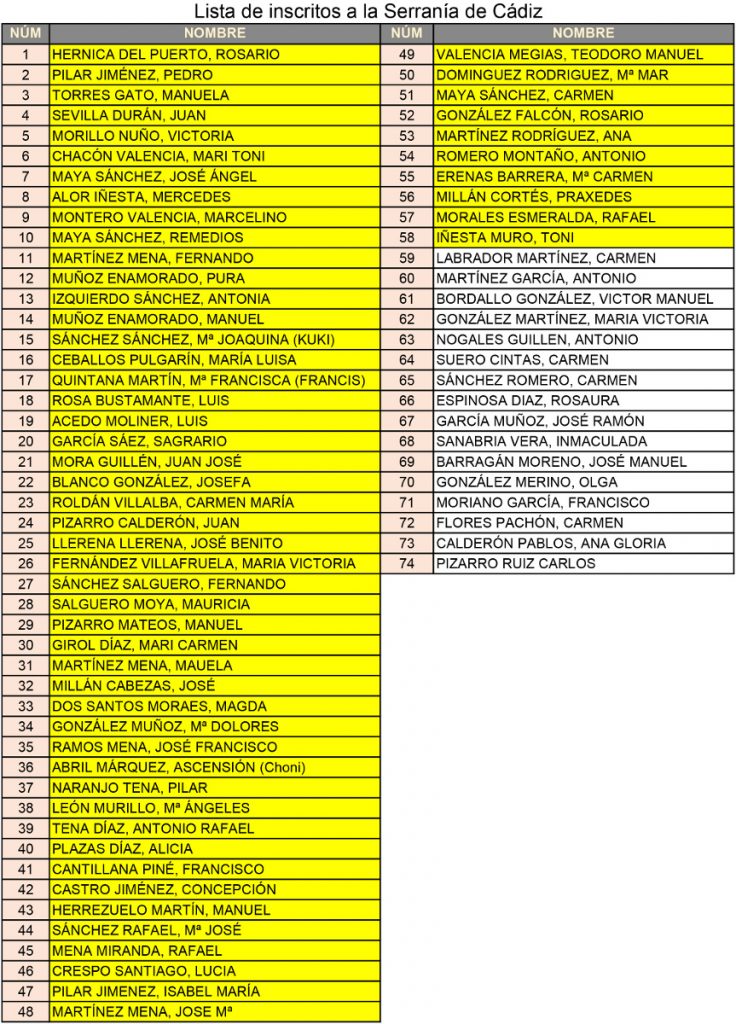 Al final de este texto, tenéis la lista de socios que han solicitado participar en la salida de fin de semana en Grazalema, prevista del 19 al 21 de mayo de 2017, ordenada rigurosamente de acuerdo con lo establecido en su convocatoria y una vez eliminados los que por diversas circunstancias han anulado su inscripción.
