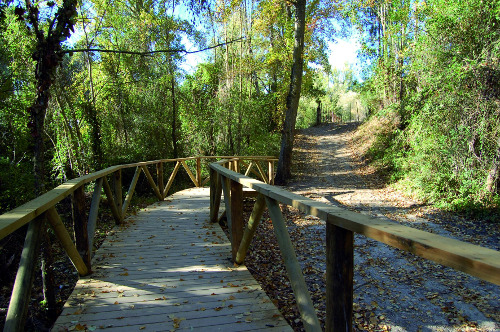 A partir de la ‘fábrica de luz’, el sendero conecta con un carril que nos lleva al jardín botánico El Castillejo, donde se encuentra representada la toda la flora de nuestro parque natural; nosotros seguiremos junto al río, por el sendero, que ahora discurre por una vega en la que los árboles de ribera ceden el sitio a cultivos, aunque se mantienen olmos y fresnos en las orillas.