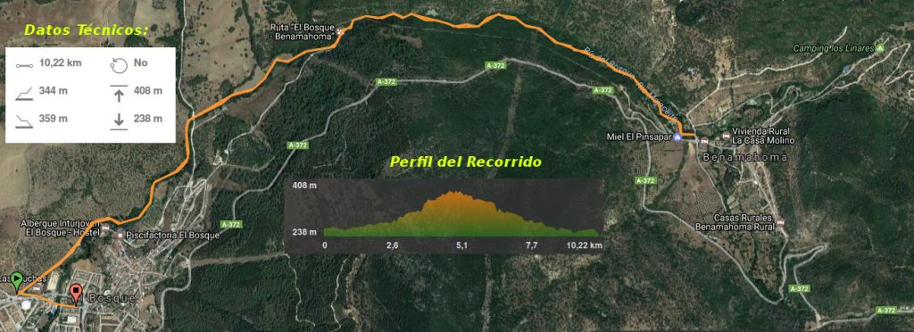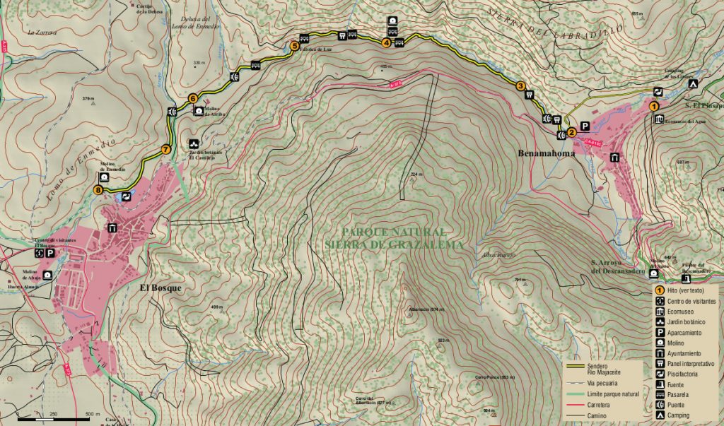 En el caso de comenzar nuestra ruta en Benamahoma (si empezamos en El Bosque el recorrido es el mismo que el que se comenta a continuación pero a la inversa), iniciaremos el sendero junto a la Venta El Bujío, donde tras pasar un puente de madera sentiremos el sonido y frescor del río Majaceite que nos acompañara a lo largo del itinerario. Este río también se conoce como río El Bosque.