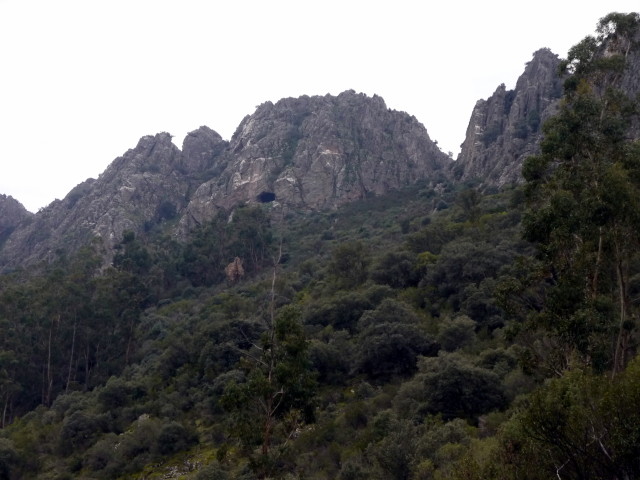 Sierra de Juncaldilla, y en ella, perfectamente visible, la oquedad de la Cueva de los Canchos de Juan Caldilla.