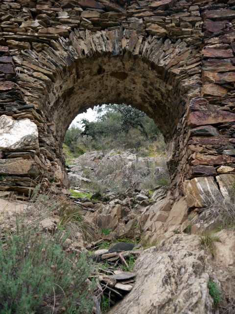 Arco en la base del muro del canal, para dejar paso al agua que provenga de algún arroyo o riachuelo, de alguna garganta o vaguada, que bajan de la sierra.