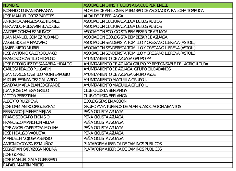 – Los alcaldes de Ahillones y de Berlanga, presentes en la reunión, manifiestan que pondrán a disposición pública los catálogos de sus municipios y manifiestan su colaboración en la defensa y recuperación de los caminos públicos.