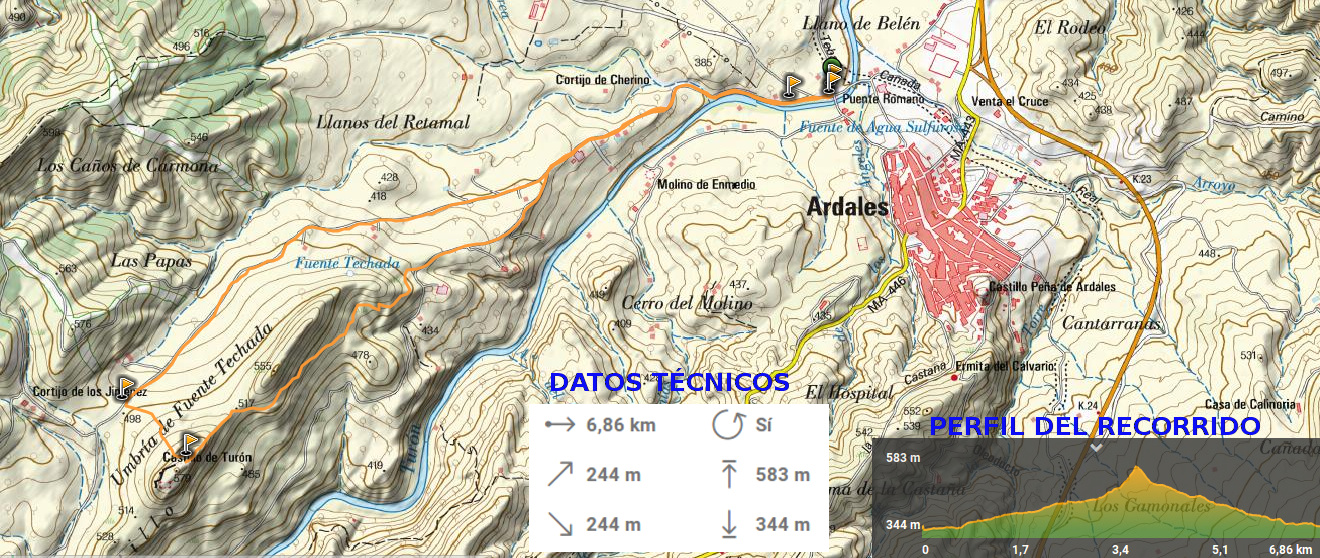 Os dejo aquí el mapa con el recorrido, así como el perfil y loos datos técnicos de éste.