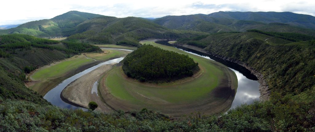 Para el domingo día 20 de mayo, la ruta prevista antes del regreso a casa es una ruta corta y circular, de escasos 8 km, con inicio y fin en Ríomalo de Abajo, donde visitaremos el mirador de la Antigua para ver las espectaculares vistas del Meandro del Melero, y nunca mejor dicho, porque con las lluvias de este año el río Alagón a su paso por este meandro debe estar pletórico de agua, nada que ver con esta imagen de hace unos años, de la última vez que estuve por aquella zona: