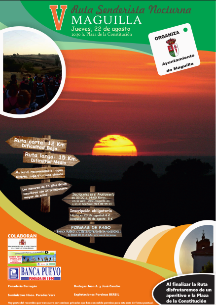 La inscripción es OBLIGATORIA siendo los precios de 4 euros hasta el 20 de agosto y 5 euros después del 20 de agosto. Las inscripciones podrán realizares en el Ayuntamiendo de 9 a 14 horas, en la web: www.maguilla.es o en el teléfono: 924 89 95 01.