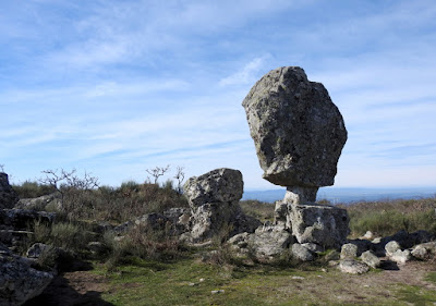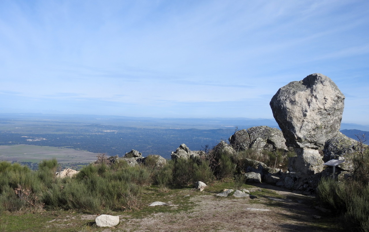 Es un tramo en ligera subida de un kilómetro o poco más, pero por pista con asfalto descarnado, una zona pelada, sin arboleda y donde lo que afloran por doquier son los canchales. Al terminar el asfalto, un giro a la izquierda y otro a la derecha siguiendo las indicaciones para después de unos pocos metros por senda, llegar al paraje donde se encuentra el “cancho que se menea”, desde donde podremos contemplar unas vistas amplísimas, desde pueblos como Almoharín, en primer término y hasta divisar Cáceres al fondo, o Trujillo, además de todos los pueblos que jalonan la carretera entre Almoharín y Cáceres.