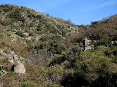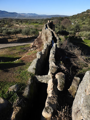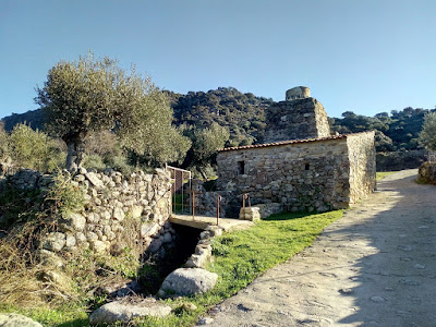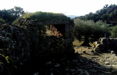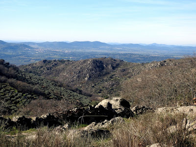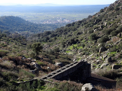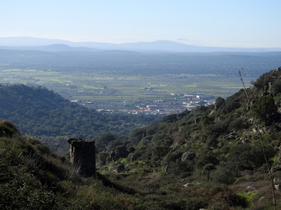 No se si serán meras impresiones mías, pero creo que este recorrido de vuelta parece estar menos transitado, menos pateado, a juzgar por algunos cortos tramos de senda que están un poco cerrados por zarzas y maleza en general, por lo que quizás muchas personas sólo hagan el tramo de subida hasta Montánchez, por la zona de los molinos.