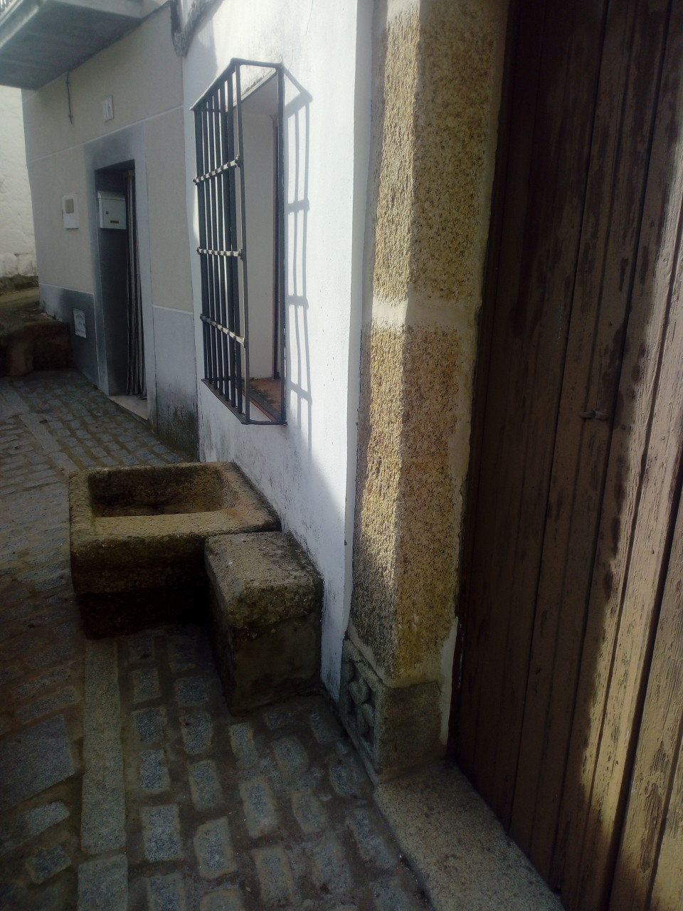 Desde la misma Plaza de España, junto a un bar de esquina, parte una bocacalle a  la izquierda, que en bajada nos sacará del pueblo, encontrándonos al final de éste con una fuente a la derecha que vierte sus aguas sobre un gran pilón de granito, justo antes de adentrarnos por el “Camino Real de Mérida” que ahora en descenso nos llevará hasta Arroyomolino de Montánchez.