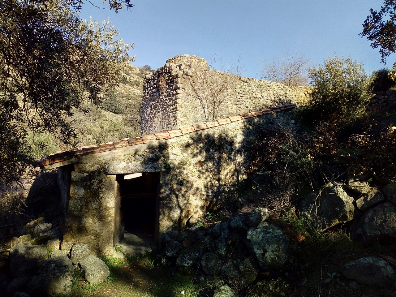 Todos los molinos que podemos encontrarnos en esta garganta son  “molinos de cubo”, un tipo de molinos que se construían “en aquellas zonas donde el agua era escasa, porque permitían una mayor potencia motriz,  sobre todo en las serranías, donde los cauces de los ríos eran muy irregulares”, así que no nos debe extrañar que la antesala de estos molinos sea una charca que recogía el agua procedente del arroyo por una acequia o pequeño canal; una charca que también podría servir para recoger el agua de lluvia procedente de la  sierra, a modo de aljibe y que a su vez serviría para mantener un caudal regular al molino, puesto que desde la charca, otro canal o acequia en leve descenso conduciría el agua hasta el “cubo”, una especie de pozo, con estructura cilíndrica por la que caería el agua en vertical en una caída de 8-10 metros, aprovechando el desnivel de la sierra, moviendo la rueda horizontal situada en la parte inferior que haría girar el eje vertical  que a su vez trasmitiría el giro a la muela superior, triturando el  grano que se cuela entre ésta y la piedra o muela inferior y produciendo la harina; este mecanismo se encontraba dentro de la “sala de la molienda”, el lugar donde trabajaba el molinero y que “solía ser una construcción de planta cuadrada o rectangular, situada en la parte baja del cubo y normalmente  con cubierta de teja árabe sujeta por una sencilla armadura de madera”, y que como he comentado anteriormente, algunas de ellas fueron restauradas por el ayuntamiento para servir como refugio, pero la falta de mantenimiento y quizás el mal uso o gamberrismo en algunos casos, van haciendo mella en ellos ¡una verdadera pena!… como también he dicho antes, de poco sirve invertir en restaurar e intentar poner en valor este entorno si después no hay un mantenimiento mínimo tanto de los molinos como en el adecentamiento de los caminos y sendas..