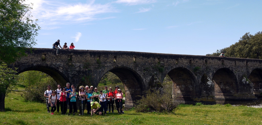 Este bonito y entretenido tramo acaba en el “Puente de la Bogaña”, ya conocido por ASTOLL porque hasta aquí llegaba también la ruta que se hacía desde Zahinos. Tras las fotos de rigor del grupo, proseguimos la marcha para realizar el último tramo, desde el puente a la carretera que va desde Villanueva del Fresno a Alconchel, en un tramo en subida de unos tres kilómetros, por una pista amplia, en un recorrido que se antoja algo insulso y que en días donde pegue «el lorenzo» se puede hacer un poco pesado, aunque seguiremos caminando por zona de dehesa, divisando una antigua noria a nuestra izquierda.