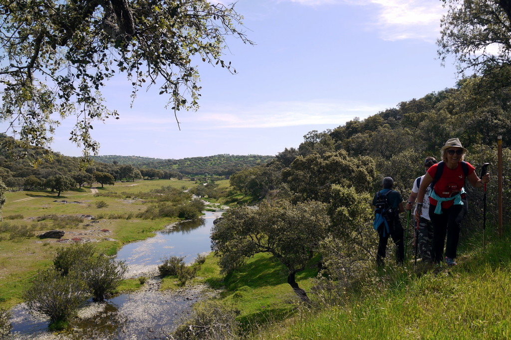 A la salida de Higuera de Vargas nuestro recorrido se dirige río abajo con dirección al puente de la Bogaña. En este caso, el sendero cubre unos 15 kilómetros por una zona más salvaje ya que, exceptuando la primera media hora de marcha que se recorre por un camino, el resto de la ruta discurre por una vereda ganadera que aparece y desaparece a su antojo.