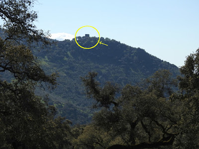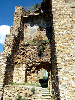 En la última parte de la subida a la izquierda aparece una zona más abierta, salpicada de canchales, pasando los cuales aparece una bifurcación. El camino de tierra sigue recto, mientras a la derecha parte el camino de hormigón que baja hasta la zona de las cuevas y éste es el que tendremos que coger. A penas unos metros andados por este camino de hormigón en descenso y ya veremos a nuestra derecha la cancela por la que se accede al breve y bonito tramo, de unos 500 metros, que lleva al castillo, cuya torre se divisa perfectamente frente a mi, teniendo además muy buenas panorámicas a la izquierda.