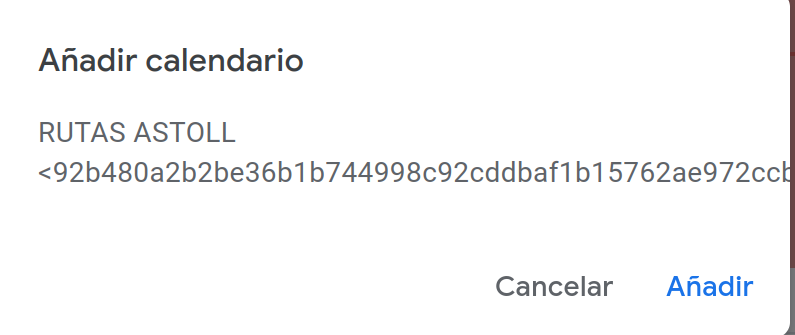 – Podéis consultar el calendario de ruta, on-line, desde cualquier navegador, en formato «Google Caledar», haciendo clic en ESTE ENLACE, teniendo la posiblidad para todos aquellos que dispngan de una cuenta de GOOGLE, de poder importar/añadir el Calendario 2024 de ASTOLL a vuestro propio calendario particular donde ya tuvieŕais vuestros eventos, fechas de interés, etc.