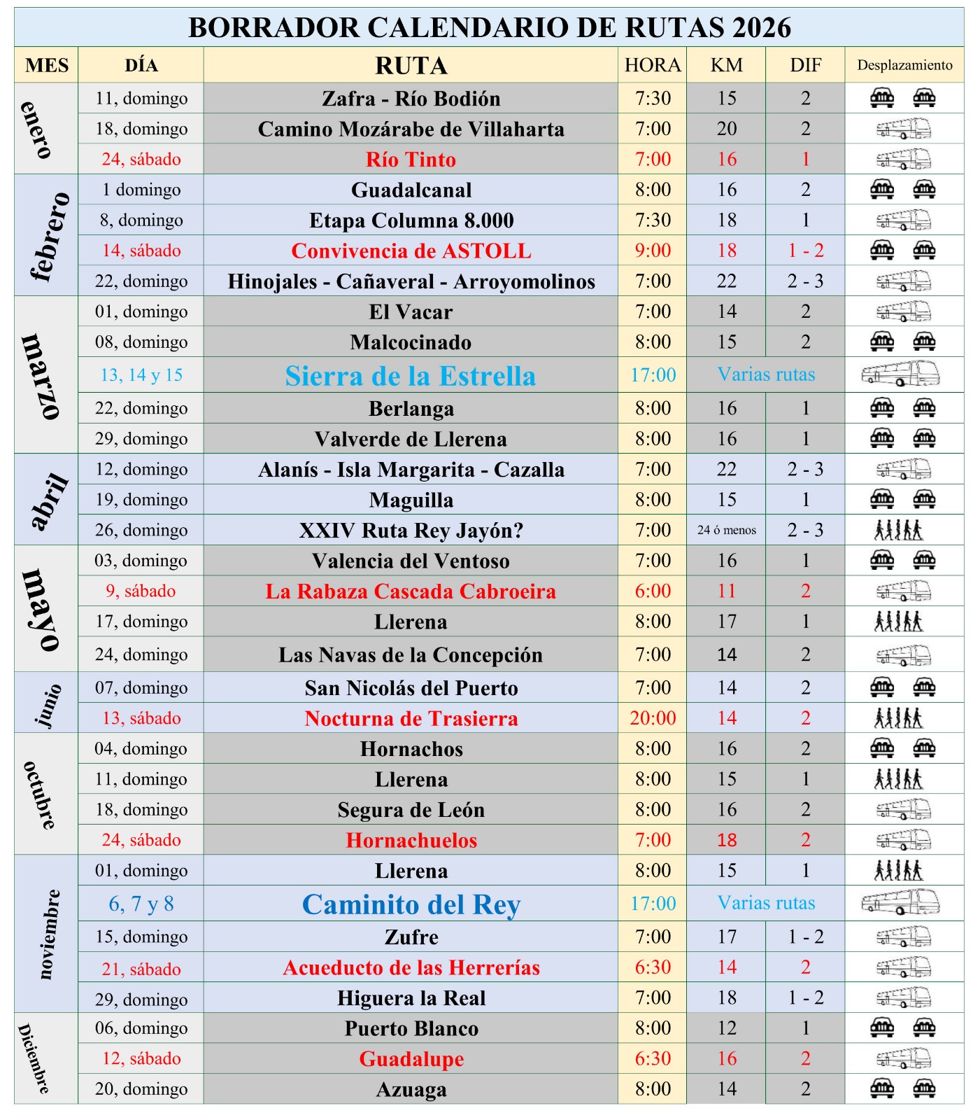 5. Presentación para su aprobación, si procede, del borrador del calendario de Rutas para el 2026.