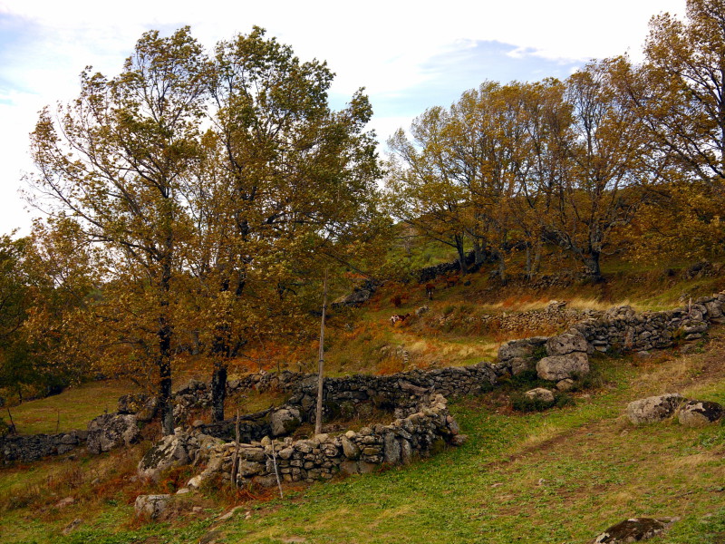 Al dejar la carretera seguiremos en ligera subida, siempre inmersos en un tupido y extenso bosque de castaños donde seguiremos disfrutando del senderismo y de la micología, llegando hasta otro enclave donde podremos realizar una pequeña parada para coger fuerzas y afrontar el repecho que le sigue. Me refiero al enclave de la Garganta de Andreś.