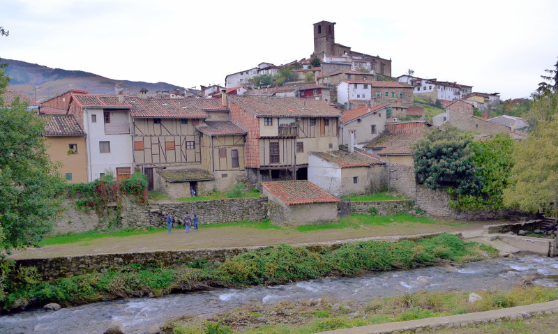 Saldremos del cobijo del bosque al tiempo que la bajada pierde fuelle, justo a la altura de un camino-pista más ancho, que cogemos a la derecha, ya en una zona más baja, por la que iremos “llaneando” entre huertas, lo que nos da idea de la cercanía de Hervás, aunque antes tendremos que cruzar el Puente de Hierro para salvar las aguas del Ambroz, junto al trazado del ferrocarril. Pasado este puente, pronto podremos tener unas buenas panorámicas de la bonita localidad de Hervás.