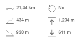 Datos Técnicos de la Ruta (Distancia, No Circular, Desnivel de subida acumulado, cota máxima, desnivel de bajada acumulado y cota mínima) :