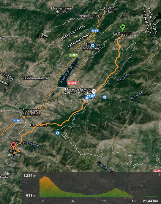 Como he dicho al principio, en otras ocasiones hemos terminado esta ruta en esta localidad, pero para el que quiera saber algo más, decir que la ruta aún continua hasta llegar a Segura de Toro, donde como curiosidad, comentar que en su plaza aún se conserva un toro o verraco de piedra, de cantería, de época prerromana, de cuando estas tierras eran el reino de pastores vetones y lusitanos. En las cercanías de este pueblo se encuentra también la Gargante Grande, aprovechada en verano como piscina natural, además del espacio natural «Los Castaños del Temblar», un espacio donde tienen cabida cinco castaños centenarios situados en un antiguo huerto cercano al Arroyo del Temblar, castaños con nombre propio: El Bronco, El Menuero, el Retorcío, Hondonero (700 años) y el Castaño del Arroyo (800 años).